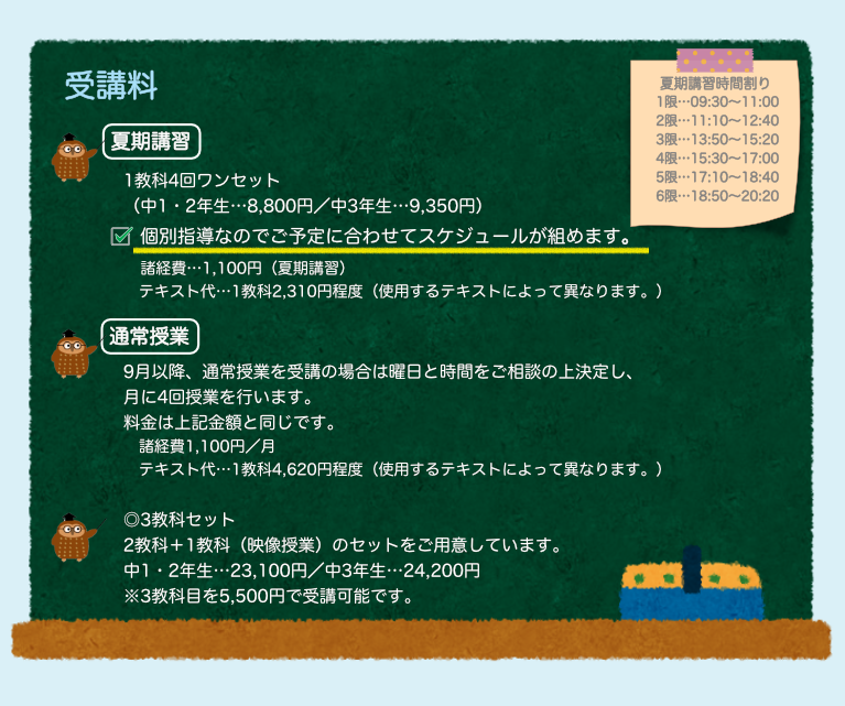 学年や曜日によっては残席が少ない場合もございますので、ご興味のある方はお早めにご相談ください。