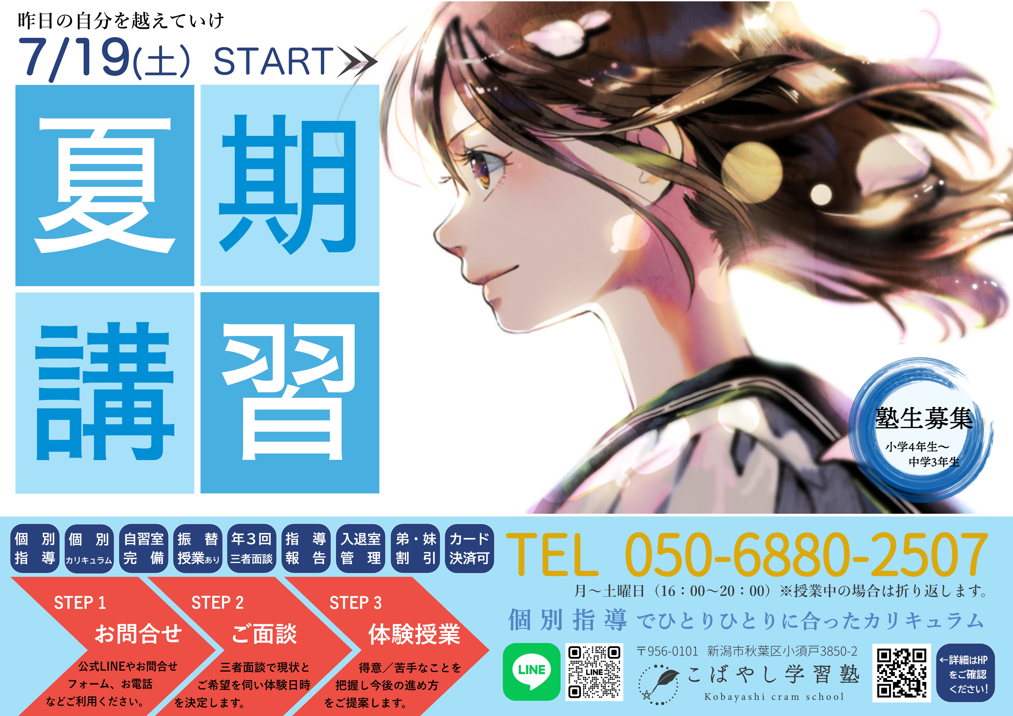なお、小学生につきましては、引き続き新規生徒を募集しております。